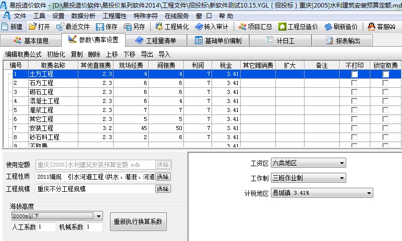 軟件適用與重慶市各類新建、擴建、加固改造等水利水電工程項目設計概(估)算的編制。包括樞紐工程(水庫、水電站、獨立建筑物工程)和其他水利工程(供引水工程、灌溉排澇工程、河湖整治工程、堤防工程)。